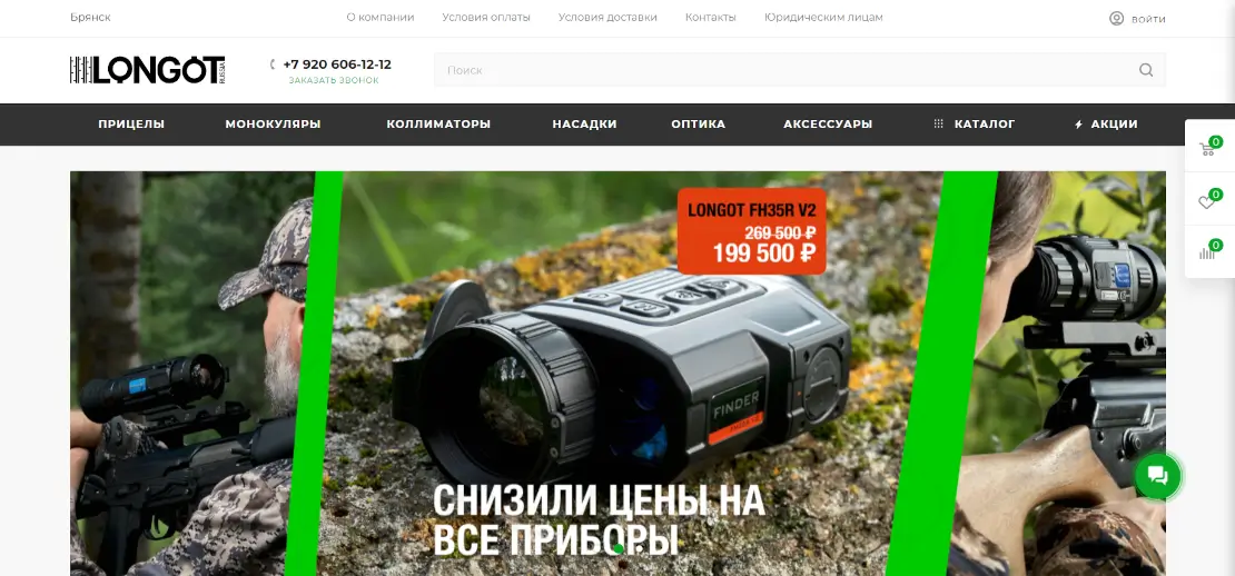 Создать интернет-магазин тепловизионных прицелов Longot.